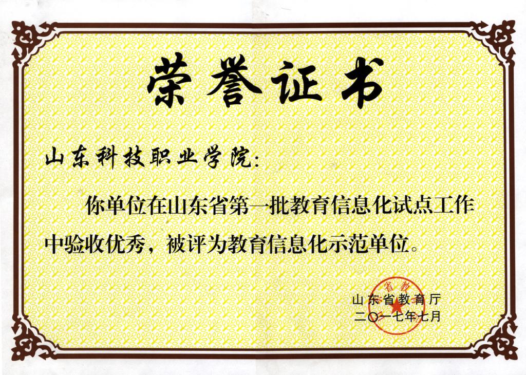 学院自2016年入选为全国首批职业院校数字校园建设实验校以来,积极完善信息化教学环境,提升校园信息化水平,优化学院信息化整体水平,促进信息化、职场化与教学深度融合,并于2017年7月在山东省第一批教育信息化试点工作中验收优秀,被评为教育信息化示范单位。