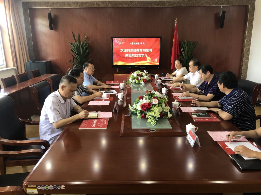 7月5日,利津县教育局局长陈建设,县教育局正科级督学崔希厚,东营市化工学校校长于兰河一行三人来我院访问交流,学院党委书记王万杰、党委副书记丁文利及生物与化学工程系相关人员陪同接待。