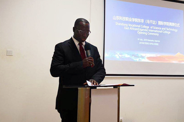 查尔斯˙安吉那在致辞中表示,中非之间在食品、能源、人力资本和基础设施建设等方面一直以来相互合作和彼此关照。近几年通过搭乘“一带一路”快车,中乌两国各领域合作不断深化,中国对乌干达的道路、桥梁、港口、机场和电信等基础设施的建设发展发挥了重要作用。当下,乌干达政府正在大力发展职业教育,视职业教育为实现本国工业化的重要战略手段,因此非常高兴见证期待已久的山东科技职业学院东非(乌干达)国际学院的落成,希望国际学院能大力培养科学技术人才,为推动乌干达工业化进程助力加油。