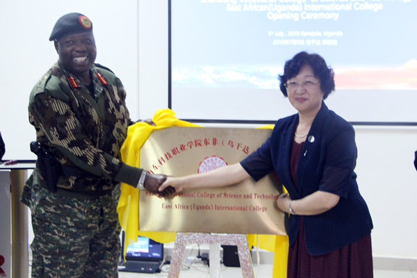 山东省教育厅副厅长黄琦与乌干达OWC副首席将军查尔斯•安吉那共同为山东科技职业学院东非(乌干达)国际学院揭牌