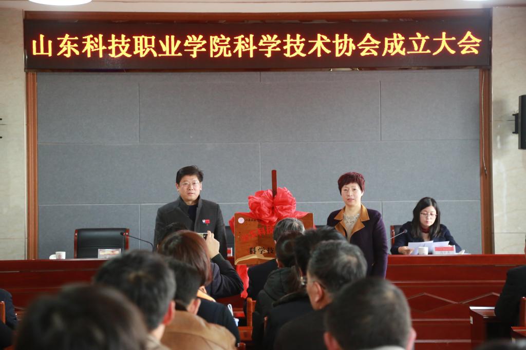 成立大会上,高建杰宣读了《关于同意成立山东科技职业学院科学技术协会的批复》(潍科协字〔2018〕56号);学校筹备组工作人员做了科协筹备工作报告;大会审议并表决通过了学院科协章程,选举产生学院第一届委员会委员和组织机构。李保城和曹丽华共同为学院科协揭牌。