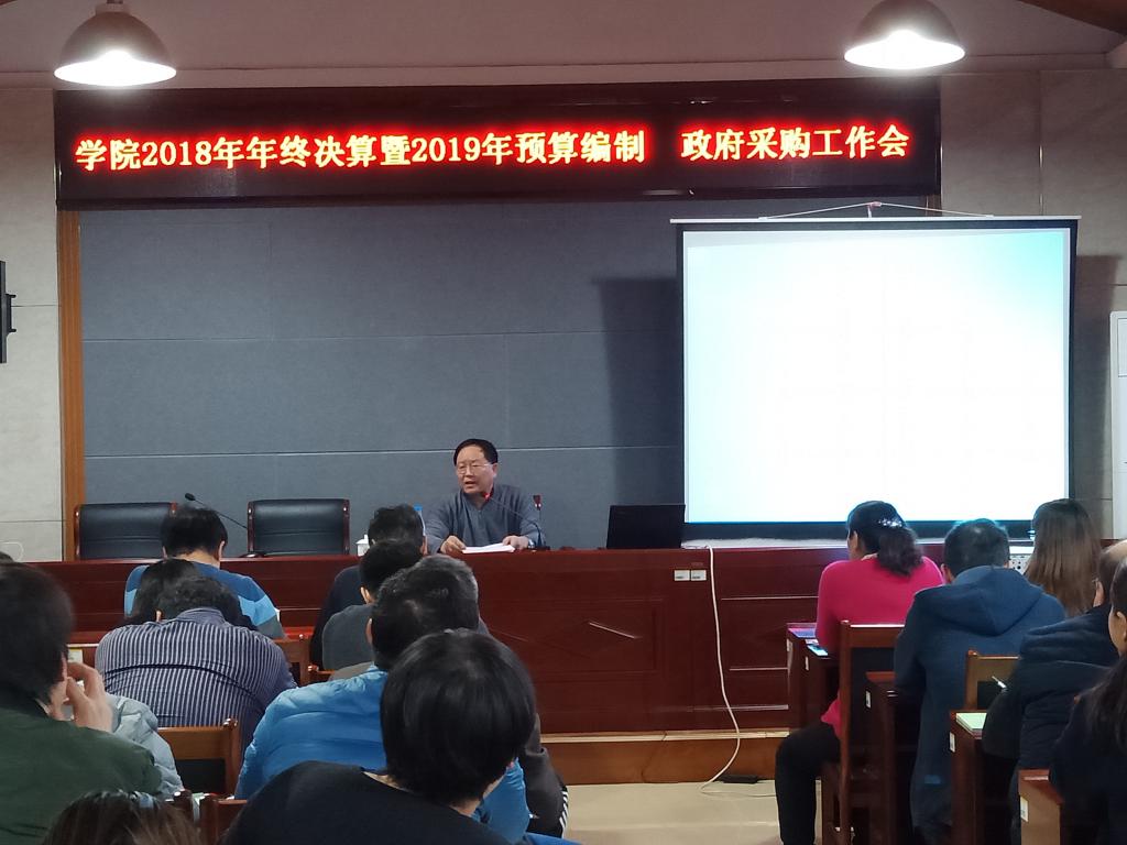 12月17日下午,学院在办公楼三楼党校组织召开2018年年终决算会议、2019年预算编制推进会、政府采购工作会议。院长刘桂玉、副院长李保城、丁文利及各部门负责人、报账员参加了会议,会议由副院长李保城主持,院长刘桂玉讲话。