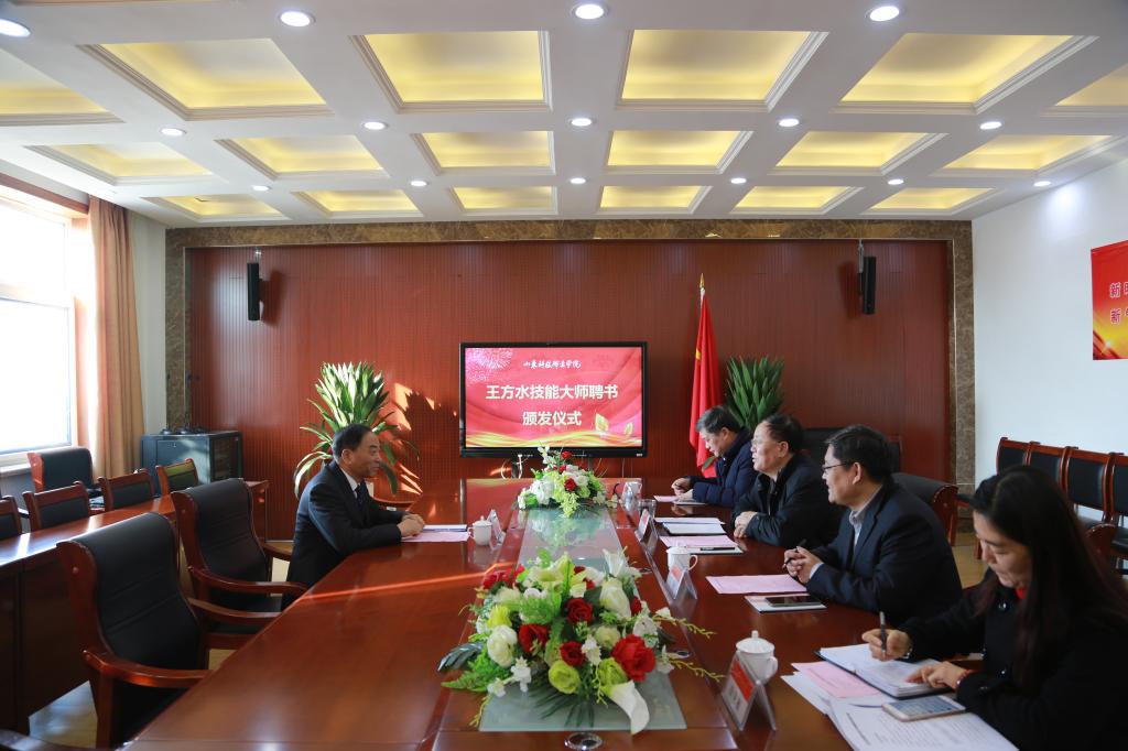 最后,刘桂玉向王方水颁发了技能大师工作室主持人、山东省产业教授聘书。