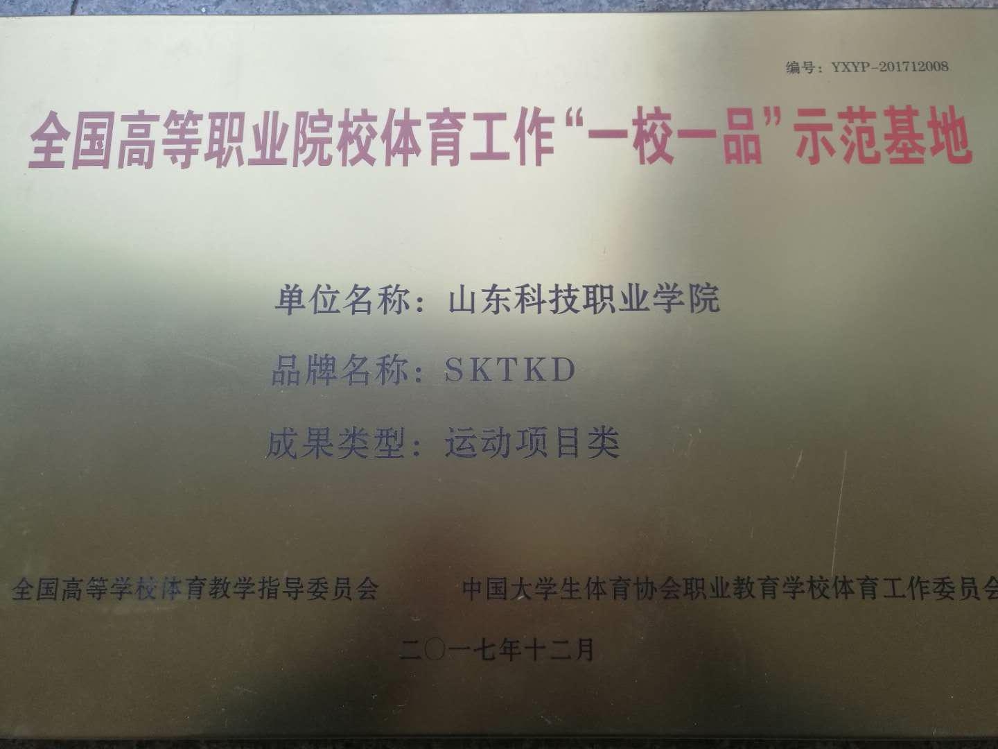 会议对“全国高职院校第三届体育工作成果奖”和全国高职院校体育工作“一校一品”示范基地进行表彰并授牌颁发证书,我院申报的跆拳道项目获批,成为三十所全国高等职业院校体育工作“一校一品”示范基地之一。