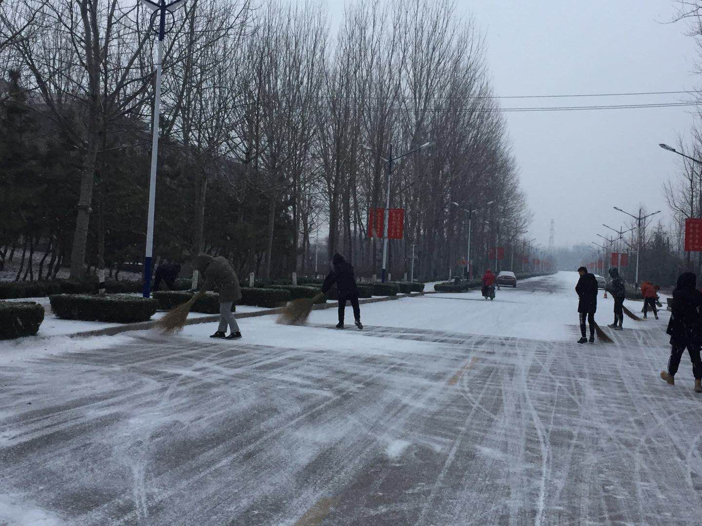 12月11日,潍坊迎来了今冬的第一场大雪,白雪覆盖了整个校园,给师生出行带来诸多不便。学生工作处迅速组织260名学生干部和导航员成立了扫雪队伍,在第一时间清除道路积雪,方便师生出行。