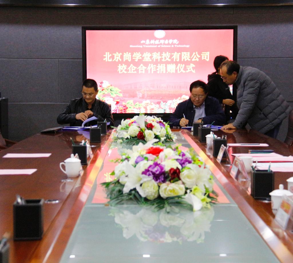11月14日下午,信息工程系与北京尚学堂科技有限公司在办公楼第一会议室举行了校企合作捐赠签约仪式。参加本次会议的有学院院长刘桂玉、北京尚学堂科技有限公司创始人董事闫肃、北京尚学堂科技有限公司山东区总经理钟辉、信息工程系领导及辅导员。