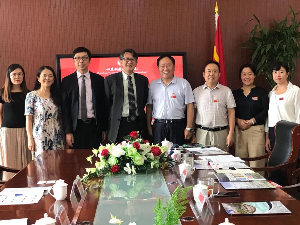 刘桂玉代表学院对来访客人表示热烈欢迎,并简要介绍了学院基本情况、办学成绩以及近年来我院在国际合作与交流上取得的成果。谢宗桦介绍了朝阳科技大学的学术交流和全球创新合作计划并与参会老师就短期研修、专业建设和创业教育课程等方面进行了深入探讨。