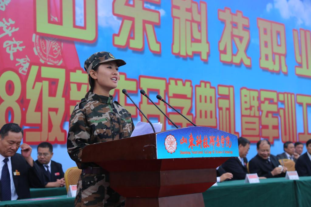 王万杰在讲话中首先代表学院党委和全体师生员工向5200余名新生表示热烈的欢迎。向圆满完成军训任务的老师们、导航员、新同学表示热烈地祝贺和由衷的敬意。他指出,军训是大学新生入学第一课,是一次身体的历练、精神的洗礼。今天的山东科技职业学院,为大家提供了更高、更强、更优的发展平台,希望新同学们在学院将迎来建校40周年华诞之际,牢记习近平总书记在全国教育大会上的重要讲话精神,牢固树立“经天纬地、追求卓越”的职业精神,学习知识,修身立德,成为德才兼备的高素质技术技能型人才,为实现中华民族伟大复兴的中国梦贡献青春和力量。并对全体新生提出了四点希望:一要志存高远,科学谋划未来;二要明理修身,务求德才兼备;三要惜时好学,练就过硬本领;四要与时俱进,增强创新能力。