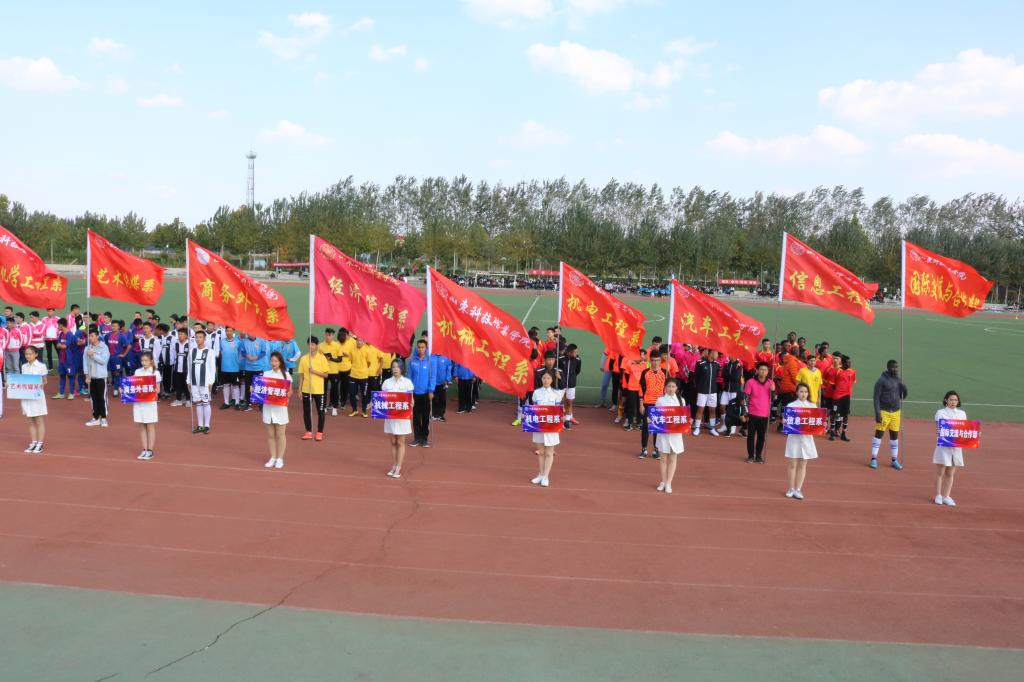 学院副院长丁文利、教学中心主任李兴凯、商务外语系党总支书记高志刚、机电工程系党总支书记门玉琢、建筑工程系党总支书记刘玉国、学生工作处副处长王芳伟及各系部的学生科老师出席开幕式,丁文利副院长致开幕词并为揭幕战比赛开球,裁判员代表和运动员代表分别宣誓。来自全院的师生代表共计600余人参加活动。