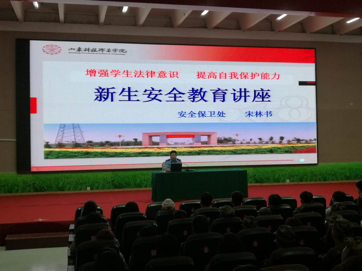 9月8日晚7:00,为提高2018级新生的法治观念,树立良好的安全防范意识,安全保卫处在学院工业中心报告厅为全体新生开展法治安全教育专题讲座。
