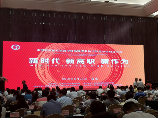 6月22-23日,中国职业技术教育学会高等职业技术教育分会成立大会在杭州召开。会议以“新时代 新高职 新作为”为主题,由中国职业技术教育学会主办,全国400余所高职院校、研究所、企业等参加会议。教育部职业教育与成人教育司副司长谢俐、中国职业技术教育学会常务副会长兼秘书长刘占山等领导出席会议。学院院长刘桂玉参加会议,会上,我院被选举为中国职业技术教育学会高等职业技术教育分会第一届理事会常务理事单位。