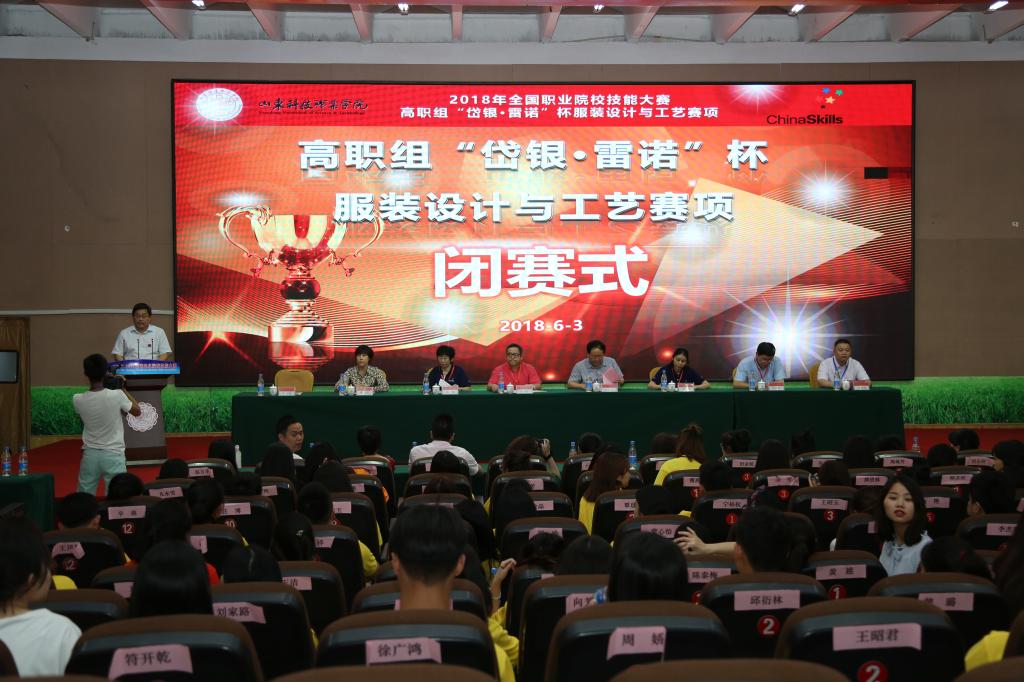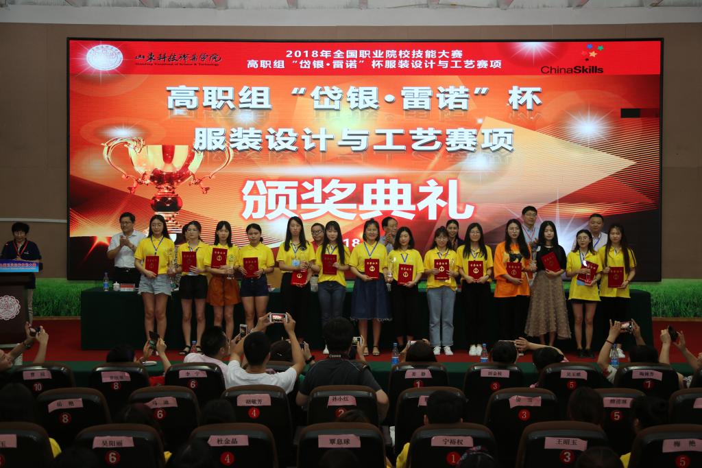 6月1-3日,2018年全国职业院校高职组技能大赛“岱银 雷诺”杯服装设计与工艺赛项在我校成功举办,本赛项已连续两年在我院举行。本赛项由教育部、山东省人民政府、科学技术部等30多个部委主办,由山东省教育厅、经济和信息化委员会、潍坊市人民政府、中国纺织服装教育学会承办,山东科技职业学院协办,共有来自全国28个省市地区的69所职业院校138名选手参加比赛。