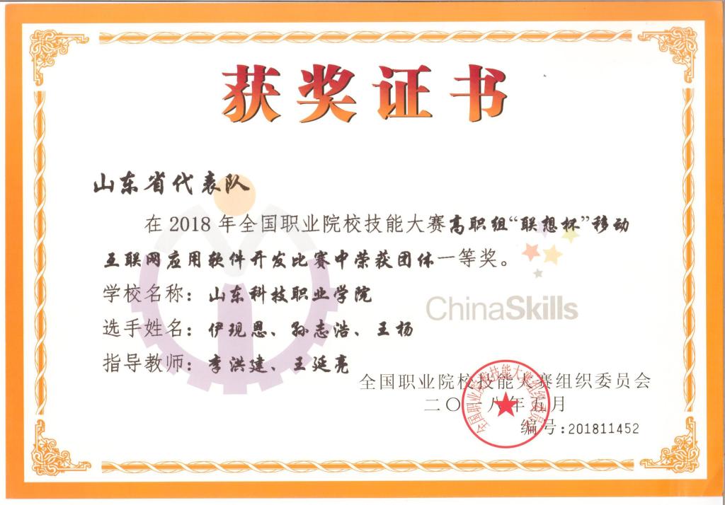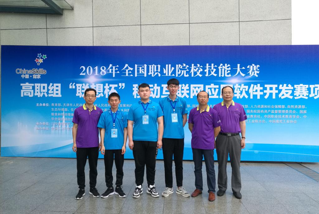 5月21日,2018年全国职业院校技能大赛“移动互联网应用软件开发”赛项在南京工业职业技术学院举行。我院信息工程系伊现恩、孙志浩、王杨三位选手不畏强手,沉着冷静,团结协作,经过与95支代表队的激烈角逐,凭借过硬的实力获得大赛一等奖,王延亮、李洪建老师获得优秀指导教师荣誉称号,这也是我院连续五年获该赛项一等奖。