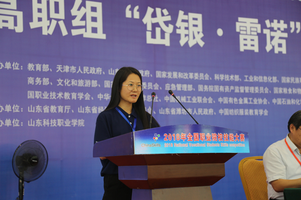 山东省教育科学研究院副院长宋树杰代表山东省分赛区执行委员会在仪式上讲话。他指出,大赛的成功举办既是我们深化职业教育教学改革,展现办学成果,提高教育教学质量的一次难得机会,也必将对加快推进山东省职业教育创新发展起到积极作用。他强调,职业院校要以大赛为契机,深入贯彻落实习近平新时代中国特色社会主义思想和党的十九大精神,继续深化职业教育改革,深入推进产教融合校企合作,努力培育工匠人才,为社会培养输送更多高素质技术技能人才。