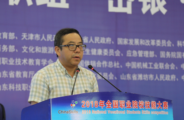 潍坊市教育局副局长刘海涛在仪式上讲话,他指出,技能大赛是展示全国各地职业技术教育成果的一次盛会,既是提高职业教育水平、加快选拔培养高技能人才的重要途径,也是对潍坊市职业技术教育的鞭策和鼓励。他期望各参赛选手发扬奋勇拼搏的竞赛精神,赛出风格、赛出水平;希望全体裁判员坚持“公平、公正”的原则,高度负责,秉公裁判,通过大赛相互交流,相互学习,提高技能水平。
