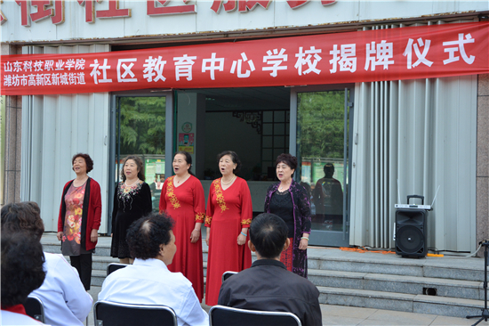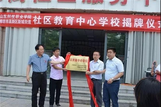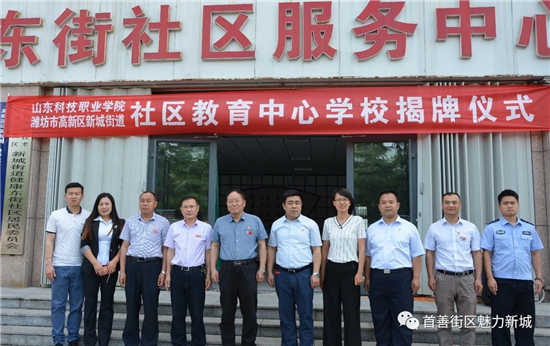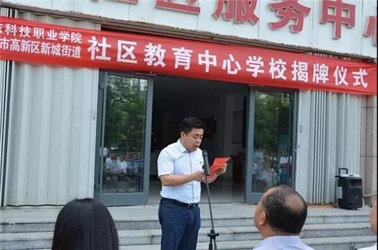 2018年5月18日上午,我院与高新区新城街道健康东街社区共建“社区教育中心学校”并举行揭牌仪式。学院院长刘桂玉与新城街道人大工作室主任杨农光等领导共同为学校揭牌。经济管理系、继续教育与培训中心等相关人员,街道社区办相关领导参加此次活动。