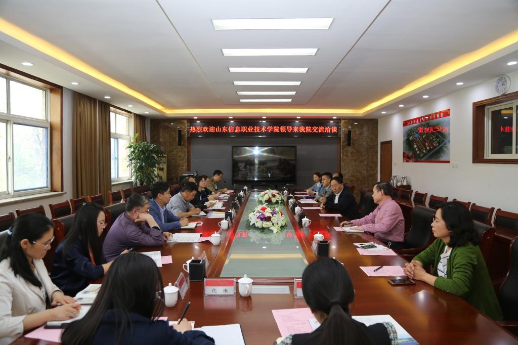 4月18日下午,山东信息职业技术学院信息系主任刘树超、宣传统战部部长刘蕊一行11人来学院考察交流。学院院长刘桂玉在第一会议室接待来访同仁并主持召开交流座谈会,学院相关部门负责同志参加交流。座谈会上,双方就职业教育信息化建设、宣传工作开展、专业及课程建设、校企合作、现代学徒制等方面进行了深入的交流探讨。