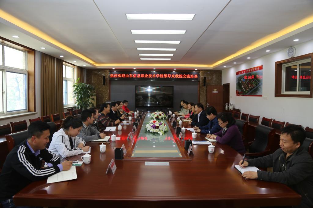 2018年4月18日下午,山东信息职业技术学院财务处处长王淑玲一行9人来我院交流,学院院长刘桂玉在第一会议室接待并主持交流座谈会,副院长李保城及财务处负责人参加。座谈会上,双方就内控管理制度建设、财务软件使用、缴费平台、具体事项的账务处理等展开了深入的交流探讨。