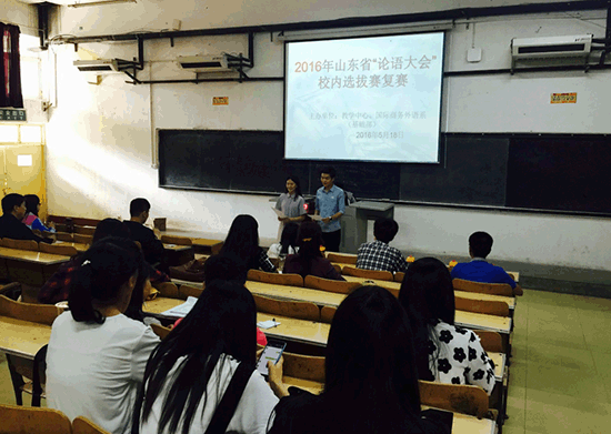 5月18日下午,由教学中心、国际商务外语系(基础部)主办的2016年山东省“论语大会”校内选拔赛复赛在博学楼C105成功举办。本次大赛旨在推动《论语》及儒学知识的传播普及,并选拔赛优秀选手参加全省大学生论语大会。