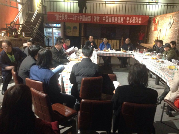 11月11日下午3:00,由山东科技职业学院麓台美术馆主办、王金明美术教育集团协办的“麓台风华—2015中国画都(潍坊)中国画家邀请展“在潍坊南大营1789艺术馆盛大开幕,来自潍坊艺术界同仁以及社会各界的朋友400余人参加了开幕式并参观了展览。 山东美协副秘书长张宜、潍坊美协名誉主席时振华、潍坊美协主席王居明、山东科技职业学院党委副书记林勇祥、潍坊美协副主席吴彦华、潍坊市奎文区文化局局长孙先政、潍城区文化馆馆长贾国伟、王金明美术教育集团校长孙科明、世纪泰华集团总裁王亮行、山东天下收藏拍卖有限公司董事长郭宝义、潍坊麦子树水文化有限公司总经理徐灯、南大营艺术区运营总监王远、中国画都书画频道总监桑新以及32位参展画家应邀出席了开幕式,策展人刘祥莲介绍展览情况,嘉宾张宜、时振华、林勇祥、孙科明、孟永胜、王居明分别致辞。开幕式结束后,还举行了以中国画都(潍坊)的中国画现状与发展为主题的学术研讨会。