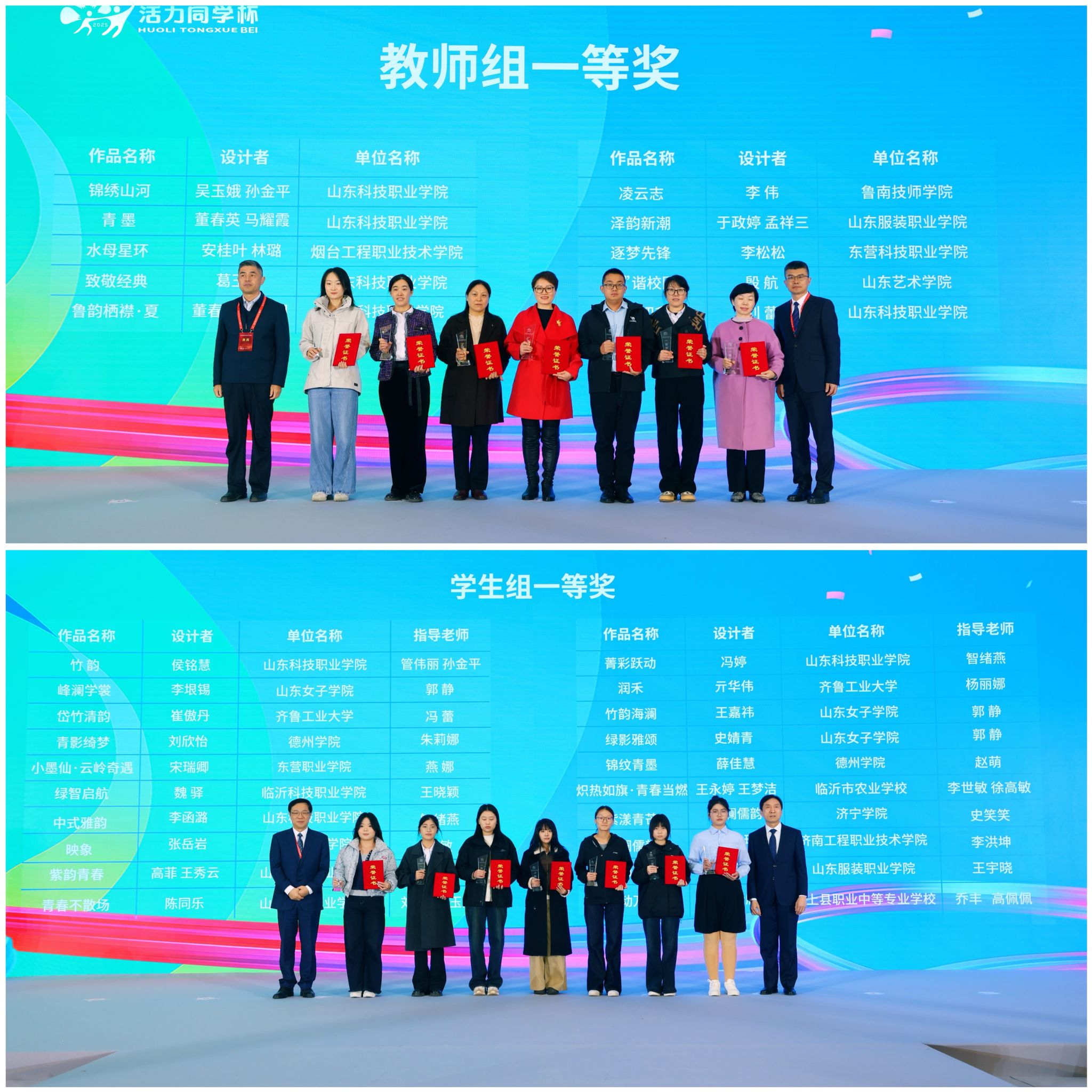 2025年10月24-26日,山东省第七届校服设计大赛获奖作品展演暨颁奖典礼在青岛世博城国际展览中心圆满落幕。本届大赛由山东省教育厅、山东省工业和信息化厅、山东省市场监督管理局联合主办,山东省教育发展服务中心承办,以“传承 创新 绿色 育人”为主题,吸引了全国138家单位参与,征集作品达1826件。经过多轮专业评审,我校纺织服装系师生凭借卓越的设计实力,共斩获奖项37项,其中教师组一等奖5项、学生组一等奖5项,获奖总数和等级在全省高职院校中位列第一。
