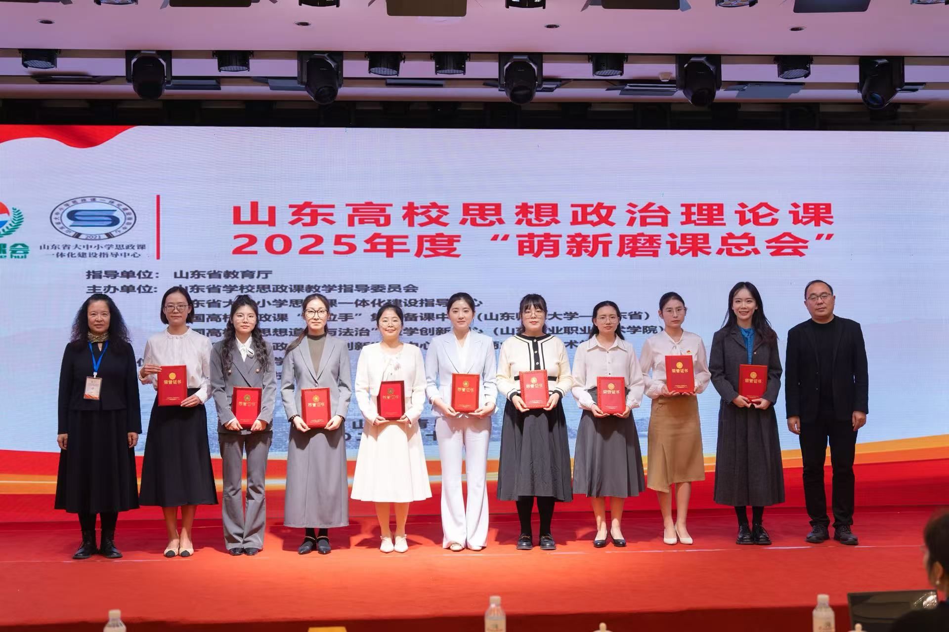 12月5日,山东省高校思想政治理论课2025年度“萌新磨课总会”在青岛圆满落幕。在这场汇聚全省高校思政教学新秀、竞争激烈的专业赛事中,我校思政课教师斩获佳绩,以特等奖1项、一等奖1项,位居所有参赛高校获奖数量榜首,成为本次赛事获奖总数最多的院校。