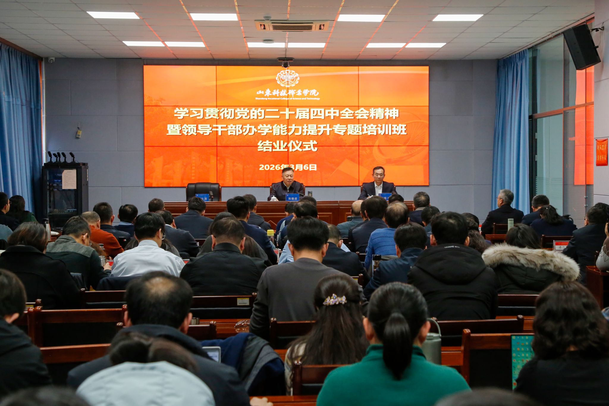 3月2日至6日,学校举办学习贯彻党的二十届四中全会精神暨领导干部办学能力提升专题培训班,全体学校领导班子成员、中层干部及科长、专业主任等300余人参加学习。