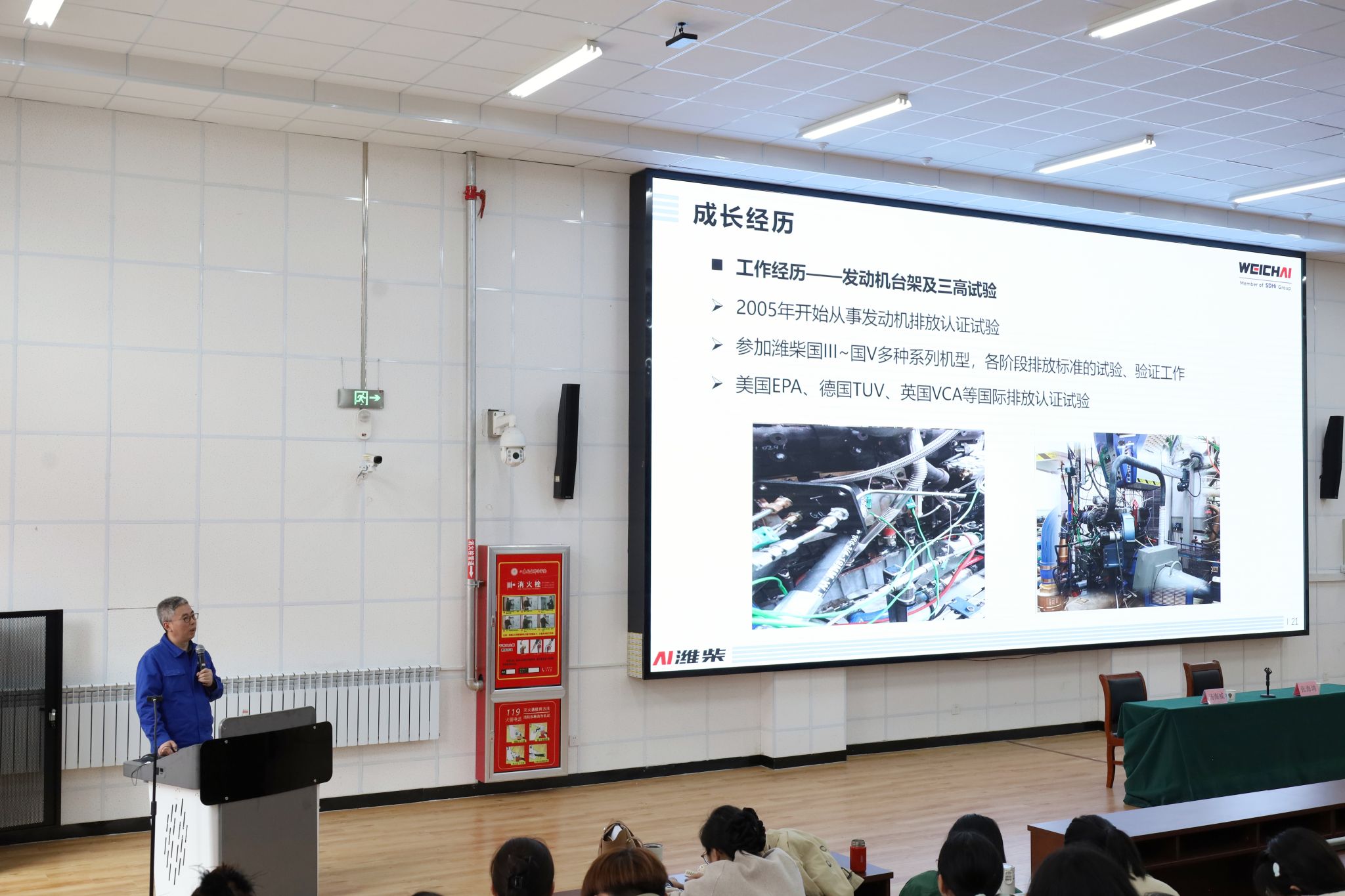 4月8日,潍柴动力股份有限公司首席技师汤海威受邀来我校作专题报告。马克思主义学院负责人主持报告会,来自汽车工程系、机械工程系、智能制造系等400余名师生共同聆听了报告会。