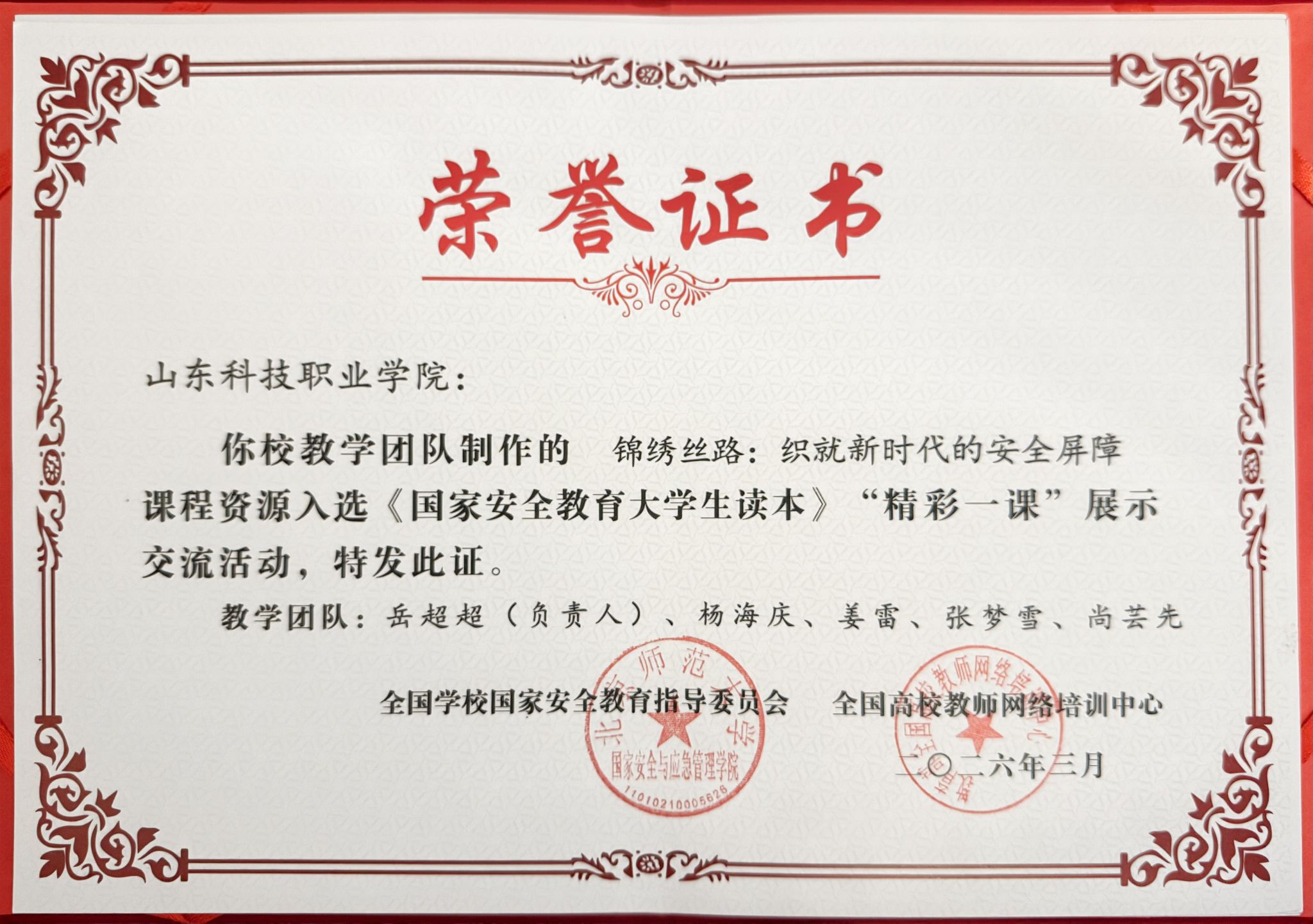 近年来,学校高度重视总体国家安全观教育,将国家安全教育全面融入思政课程与课程思政建设,打造了一批特色鲜明、实效突出的教学资源,在省级国家安全知识竞赛、主题微课评选等活动中多次斩获佳绩。下一步,学校将以此次入选为契机,进一步发挥优质课程的示范引领作用,持续探索国家安全教育的新路径、新方法,推动总体国家安全观在学校落地生根,为培养具有国家安全意识和素养的时代新人贡献山科力量。