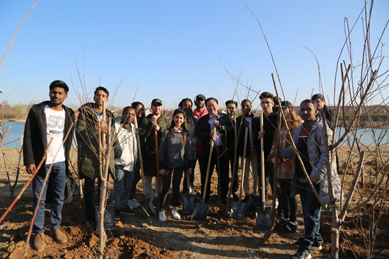 3月16日下午,学院组织开展以“绿化环境,从我做起”植树造林活动,院长刘桂玉、副院长王永智、李保城、纪委书记宿成山参加此次活动。院领导与师生、外籍学生一起来到龙兴湖畔,亲手种植寓意繁荣、热烈、高尚的碧桃树,祝福着学院的未来更加美丽,更加富有活力。师生们共同体会了亲自栽种的快乐,为校园增添一抹绿色。现场气氛热烈,师生纷纷为自己种植的树苗命名,希望与树苗共成长,将植树活动赋予更多意义。