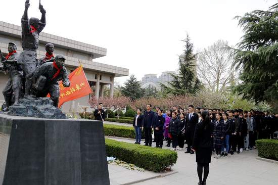 春光融融,草木菁菁;清明节至,日丽风清。为深入学习贯彻习近平新时代中国特色社会主义思想和贯彻党的十九大精神,传承革命先烈精神,促进党团共建,提升团员、学生干部的政治素养和爱国主义情怀,在我国重要传统节日清明节到来之际,学生工作处于4月4日组织主要学生干部前往潍坊市烈士陵园开展“传承革命先烈遗志,弘扬爱国主义精神”主题祭奠活动。