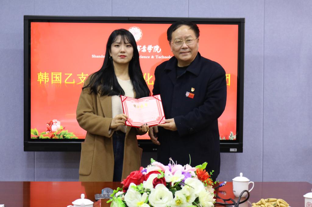 1月12日,韩国乙支大学美容化妆专业研修团12名学生结业典礼在办公楼第三会议室隆重举行,院长刘桂玉、副院长王永智、国际交流与合作部主任董敬贵等出席了结业典礼。