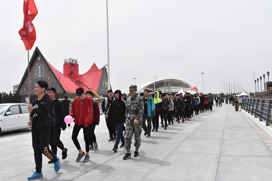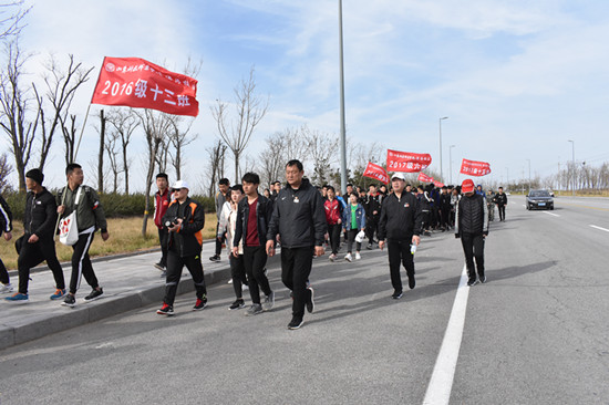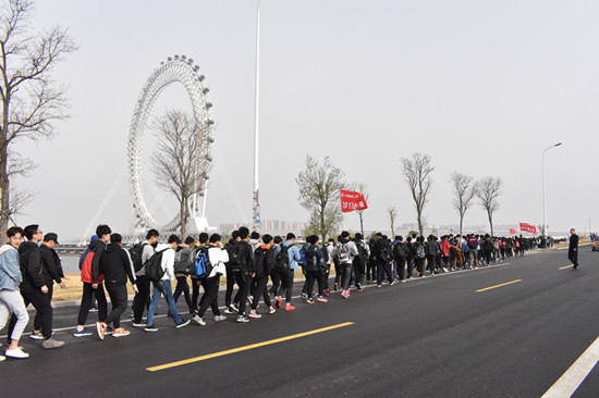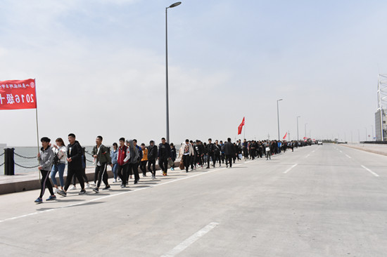 本次徒步拉练活动以滨海校区为起点,途经美丽的白浪河入海口,雄伟的“渤海眼”摩天轮,风景宜人的“欢乐海”沙滩、壮观的拦海大坝、著名的国际风筝放飞场,全程42公里。