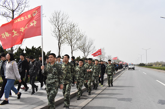 4月14日至15日,莺歌燕舞,春意盎然,滨海校区开展以“磨练意志、强壮精神、 凝聚合力”为主题的长途徒步拉练教育活动。院长刘桂玉对拉练活动提出了总的要求,副院长丁文利对拉练活动进行了策划指导;学生工作处处长高洪荣做了拉练动员讲话,五年大专部主任魏成利主持拉练宣誓动员大会。1500余名师生参加了拉练活动。 “海上党旗红﹒红鸢党支部” 央子边防派出所部分党员干警随同参加了本次拉练活动。