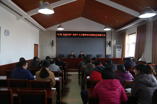为深入学习宣传贯彻党的十九大精神,确保“灯塔—党建在线”党的十九大精神竞赛活动的参赛成效,12月13日上午,组织部在办公楼党校召开“灯塔—党建在线”党的十九大精神知识竞赛活动动员部署大会暨支部竞赛联络员培训会,会议由组织部瞿德文同志主讲,组织部副部长齐风升同志作总结发言,全院各总支、直属党支部竞赛联络员参加会议。