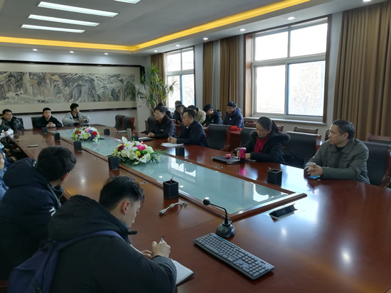 华腾印染织造有限公司总经理孙连忠、山东科技职业学院副院长李保城、国际交流与合作部主任董敬贵、纺织服装系主任徐晓雁出席此次推进会,经济管理系、纺织服装系市场营销专业教师参加交流座谈,会议由李保城主持。