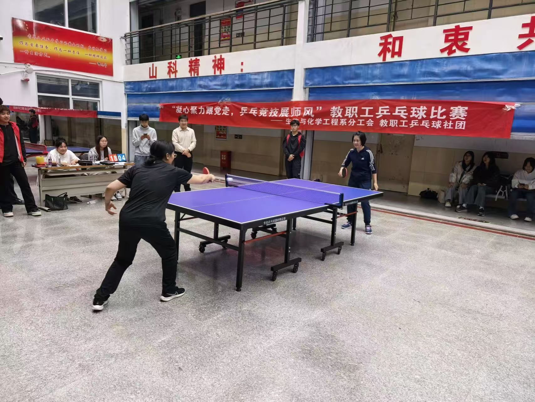 为丰富教职工文体生活,以竞技精神凝聚团队力量,由工会(妇委会、退休人员管理服务中心)主办,生物与化学系分工会承办的“凝心聚力跟党走,乒乓竞技展师风”教职工乒乓球比赛于10月15日下午在大学生事务管理中心成功举办。