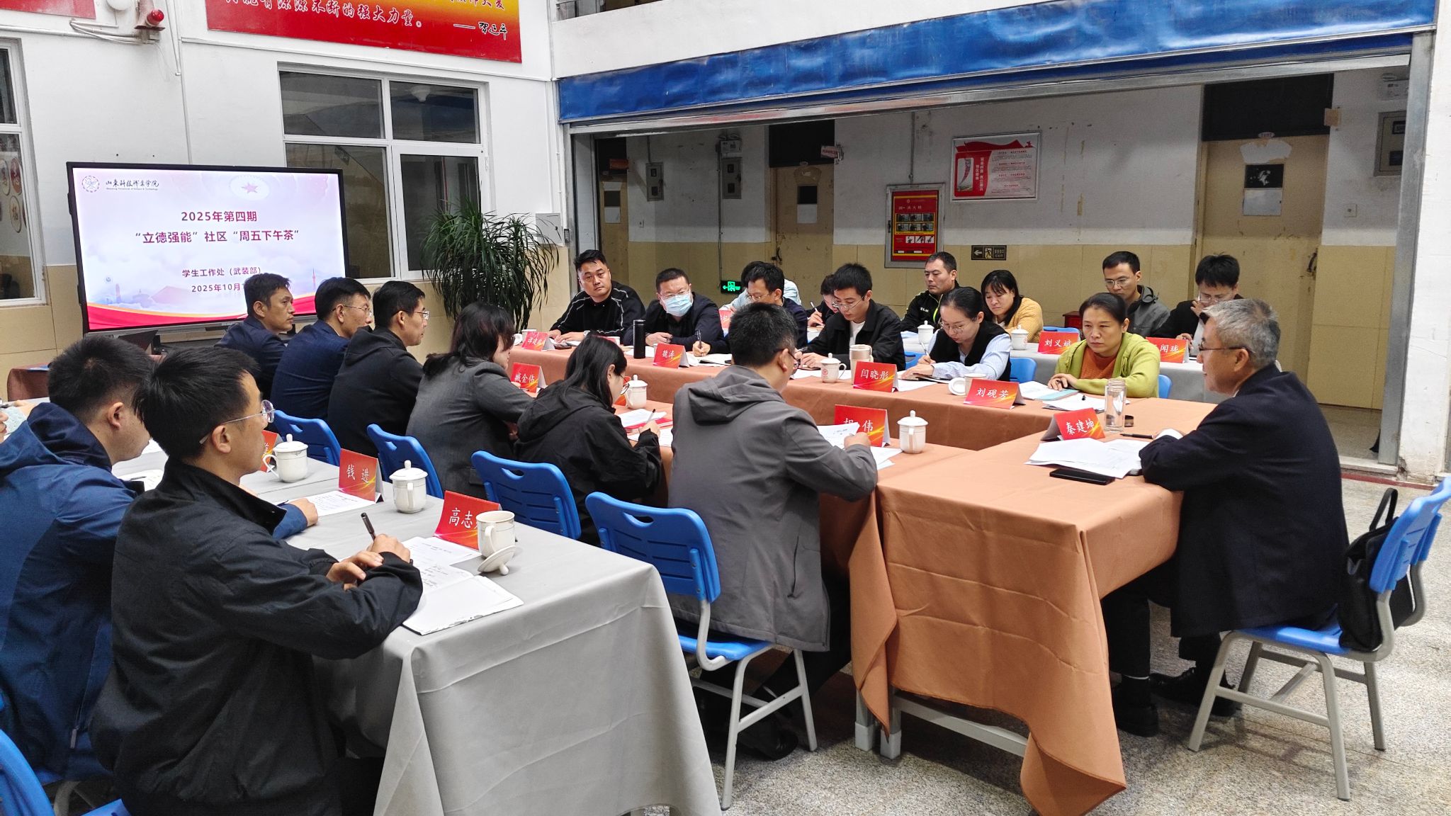 为促进各辅导员工作室交流,探索工作室建设创新路径,10月17日下午,“立德强能”学生社区第四期“周五下午茶”活动于学校大学生事务管理中心开展。党委副书记秦建坤参加座谈,各辅导员工作室负责人及代表共计24人参与。