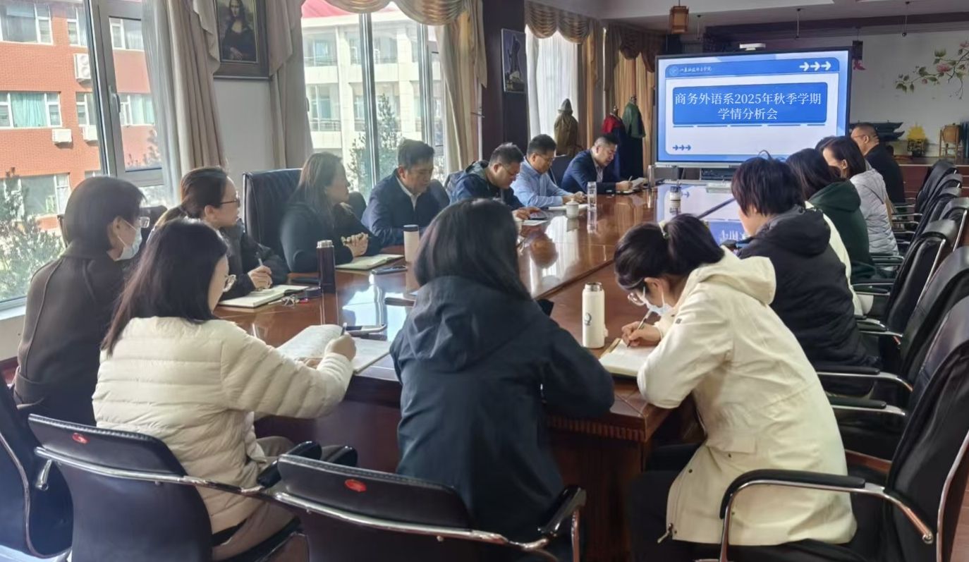 为精准把握当前学生动态,找准问题症结,凝聚育人合力,10月22日下午,商务外语系在博学楼D208召开2025年秋季学期学情动态分析会,学生工作处处长王伟和副处长受邀指导,系党总支书记徐海强、全体辅导员及班主任参加。会议由系党总支副书记主持。