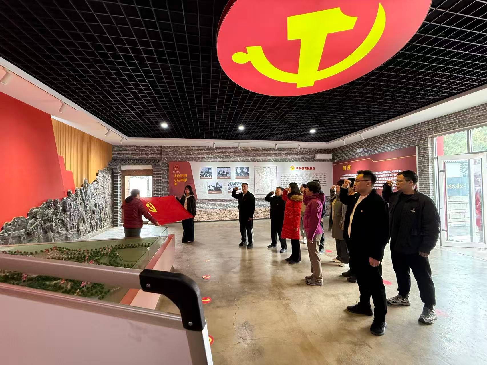 活动首站,全体党员走进华东保育院党性教育馆,重温战火岁月中革命先辈保护教育下一代的感人事迹。在庄严的党旗下,全体党员重温入党誓词,再忆入党初心,进一步强化了党性意识和责任担当,深刻体悟党建思政引领力的时代内涵与实践要求。随后走进三贤祠,瞻仰范仲淹、富弼、欧阳修三位北宋名臣的勤廉事迹,深入学习“先天下之忧而忧,后天下之乐而乐”的为民情怀与清正廉洁的为官之道。这场生动的“官德”教育与廉政文化课,引导大家在新时代背景下传承官德文化,筑牢拒腐防变的思想道德防线,是党建业务双融双促的鲜活体现。最后,双方党员一同参观了青州博物馆,通过沉浸式感受青州的深厚历史积淀与灿烂文明,进一步增强了文化自信与历史视野,激励全体党员精干实为,共同致力于提升服务学校发展的能力与办学条件支撑度。
