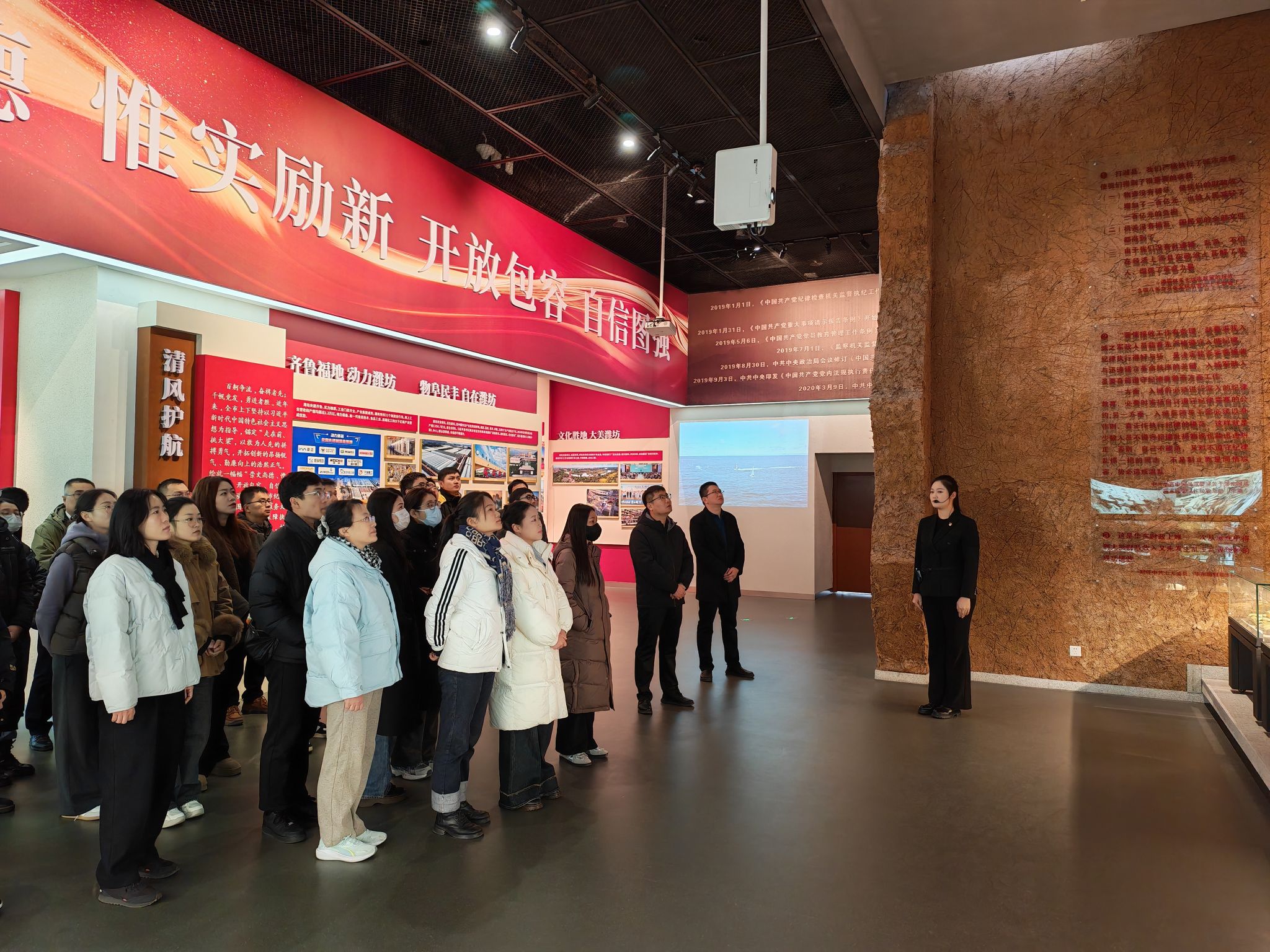 活动中,全体人员有序参观了正气浩然厅、正风肃纪厅、正法直度厅等六个展厅,通过一幅幅生动的图片、一件件真实的案例、一段段震撼的影像,全方位、多角度地了解了潍坊地域廉洁文化的历史渊源、发展脉络以及反腐倡廉工作取得的显著成效。在参观过程中,大家认真聆听讲解,不时驻足凝视,深刻感受到了违纪违法给党和国家、个人与家庭带来的巨大危害,心灵受到了强烈的震撼和洗礼。最后在宣誓厅,全体党员面对党旗重温入党誓词,进一步坚定了理想信念,增强了党性修养。