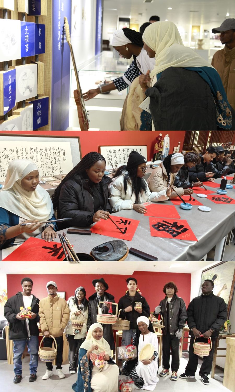 在互动体验中,留学生开启了别样的文化探索。“我的潍城年”环节里,留学生执笔挥毫,在红宣纸上认真书写“福”字,体会中国春节习俗里藏着的文化内涵;非遗铜拓体验中,留学生在传承人指导下循古法拓印,在实践中感受传统技艺的魅力,留下独属于自己的文化记忆。