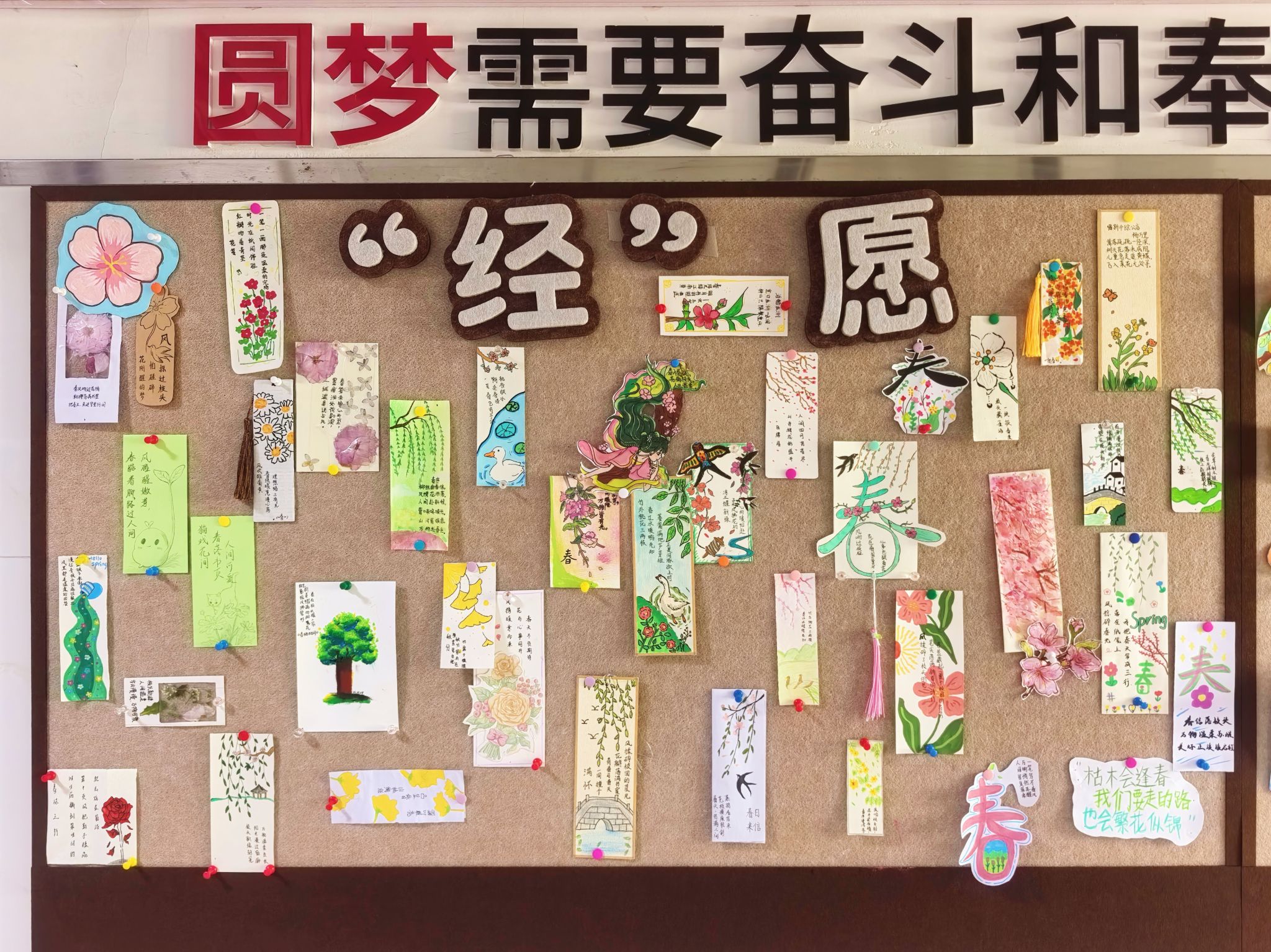 活动过程中,同学们以春日为核心主题,以笔为媒,以诗为介,围绕春光、成长、希望等意象进行三行诗创作,并将作品书写于实体书签之上。大家搭配水彩、拼贴等多种形式自由发挥创意,让每一份作品都成为可触摸、可收藏的春日印记,既饱含诗意、积极向上,又生动展现出春意盎然的美好气息。同学们纷纷表示,这次活动让大家在忙碌的学习生活中停下脚步,感受自然之美、文字之美,激发了大家的创作热情,同时,也通过作品展示美化了社区环境。