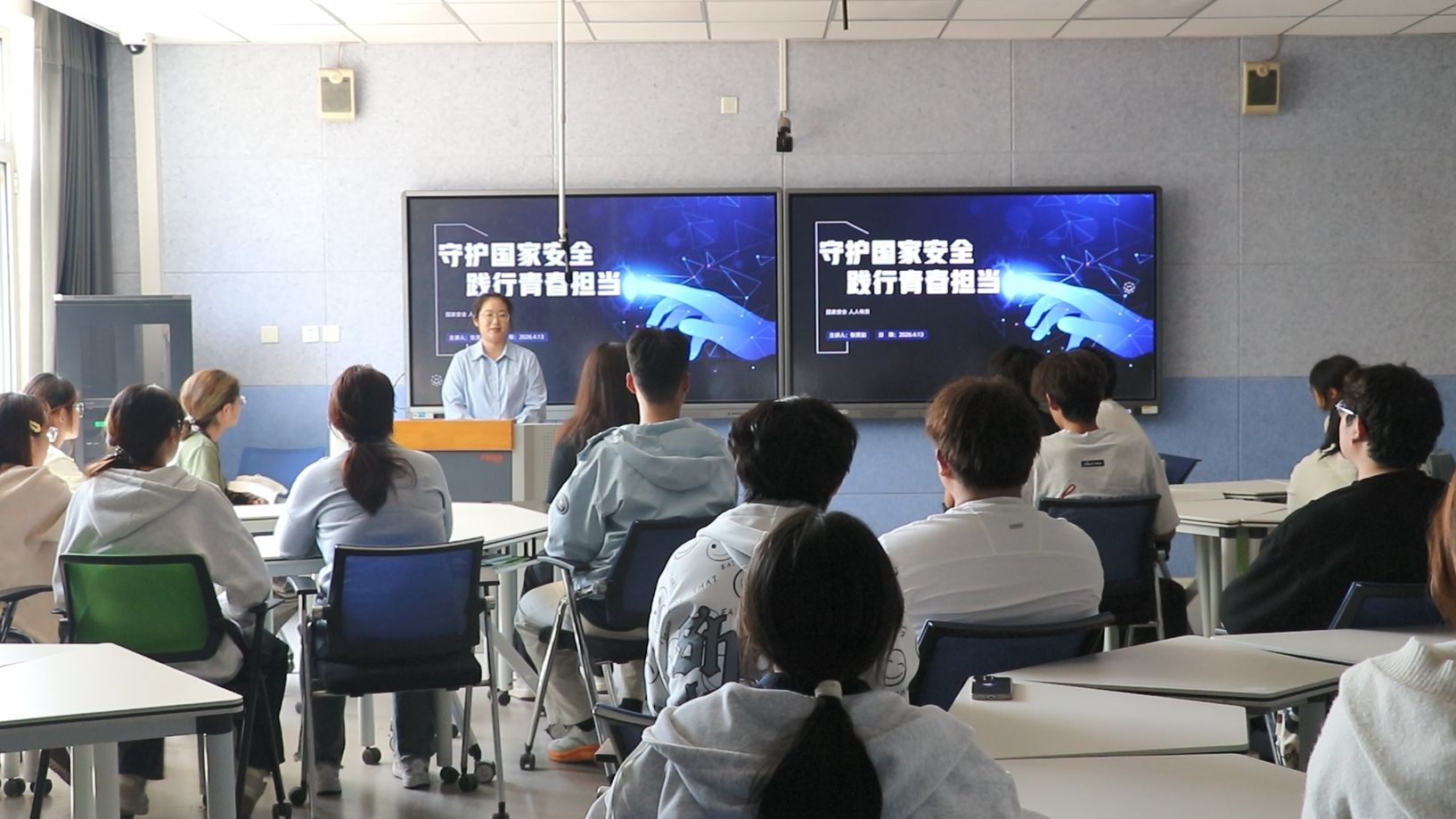 4月13日,在第11个国家安全教育日来临之际,由经济管理系承办的“守护国家安全 践行青春担当”主题班会在笃志楼209智慧教室顺利开展,全校20余名辅导员参与旁听。