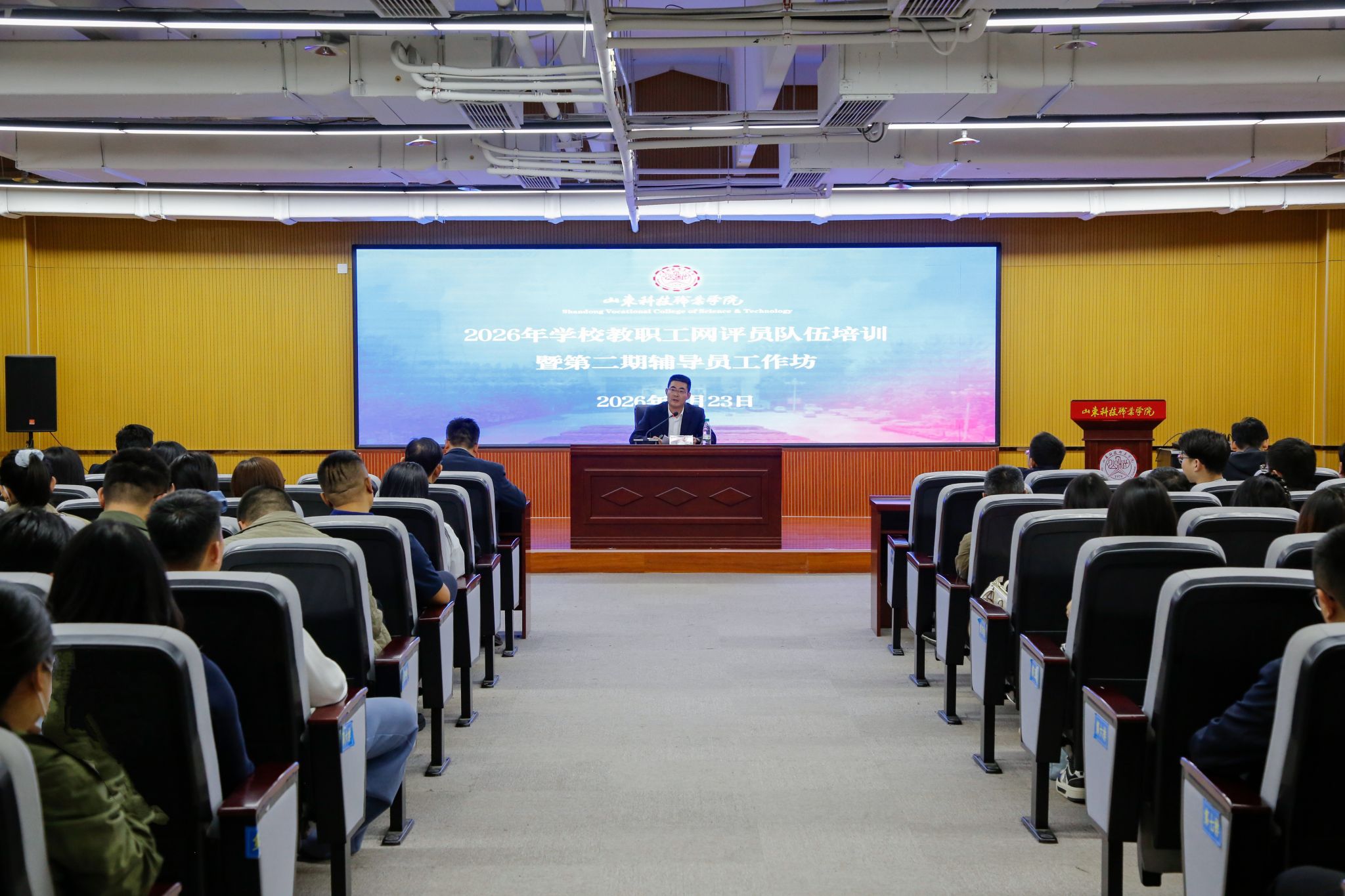 为深入落实意识形态工作责任制,切实提升应对复杂网络环境的治理能力,4月23日下午,学校在工业中心西门子报告厅举办教职工网评员队伍专题培训暨第二期辅导员工作坊。党委委员、宣传统战部(教师工作部)部长李兴凯作专题辅导,各部门教职工网评员、各系部党总支副书记、辅导员等100余人参加培训。