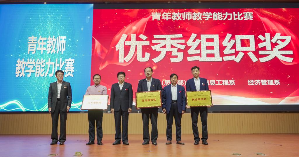 第二环节是颁奖环节。首先由评委专家组组长林勇祥教授从教学理念、教学设计和教学实施三个方面对青年教师教学能力比赛表现进行点评,他首先对参赛青年教师的认真态度以及教学能力做出充分肯定,同时他指出各位青年教师仍需不断钻研教学,在教学过程中融合新的信息技术手段,探索职业教育教学改革,并通过参加教学竞赛,不断提高自身的教学水平。随后,由学院党委副书记丁文利宣布获奖教师名单及优秀组织奖获奖单位:经济管理系陈璐、基础部(思政部)陈君、生物与化学工程系陈义群3位老师获得一等奖,机电工程系刘艳平等5位老师获得二等奖,基础部(思政部)张可等7位老师获得三等奖,基础部(思政部)陈君老师获得最佳人气奖,基础部(思政部)、信息工程系和经济管理系获得优秀组织奖。