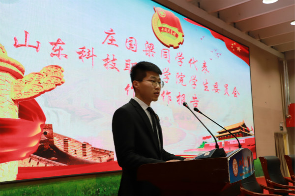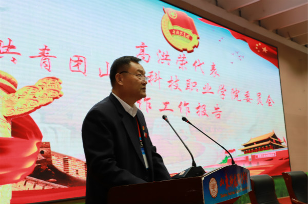 学院团委书记高洪荣作了题为《厚植理想信念,勇担改革使命,为建设国内领先,国际知名的现代化高职院校贡献青春力量》的工作报告。院学生会主席庄国梁作了题为《服务同学成长成才,奋力推进改革攻坚在实现“山科梦”的征程上汇聚磅礴青春正能量》的工作报告。