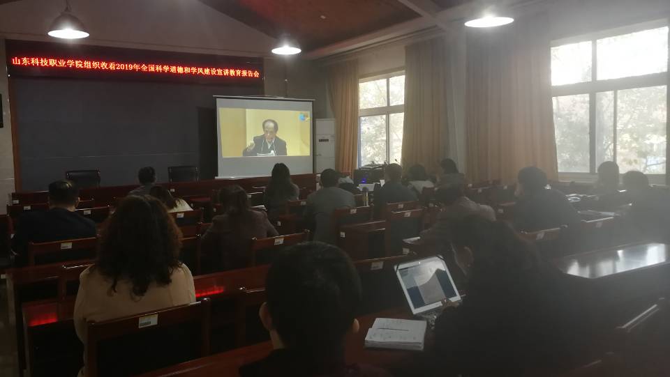 为学习贯彻习近平新时代中国特色社会主义思想和习近平总书记关于科学道德和学风建设的重要指示精神,落实《关于进一步弘扬科学家精神加强作风和学风建设的意见》,深入推进科学道德和学风建设宣讲教育工作,由全国科学道德和学风建设领导小组主办的“2019年全国科学道德和学风建设宣讲教育报告会”于11月13日下午15:00在人民大会堂举行。校学术委员会委员、校科协委员在办公楼三楼党校收看,各项目负责人、骨干教师及新入职教师在教师发展中心报告厅收看,五年大专部老师在滨海校区会议室收看了视频直播。