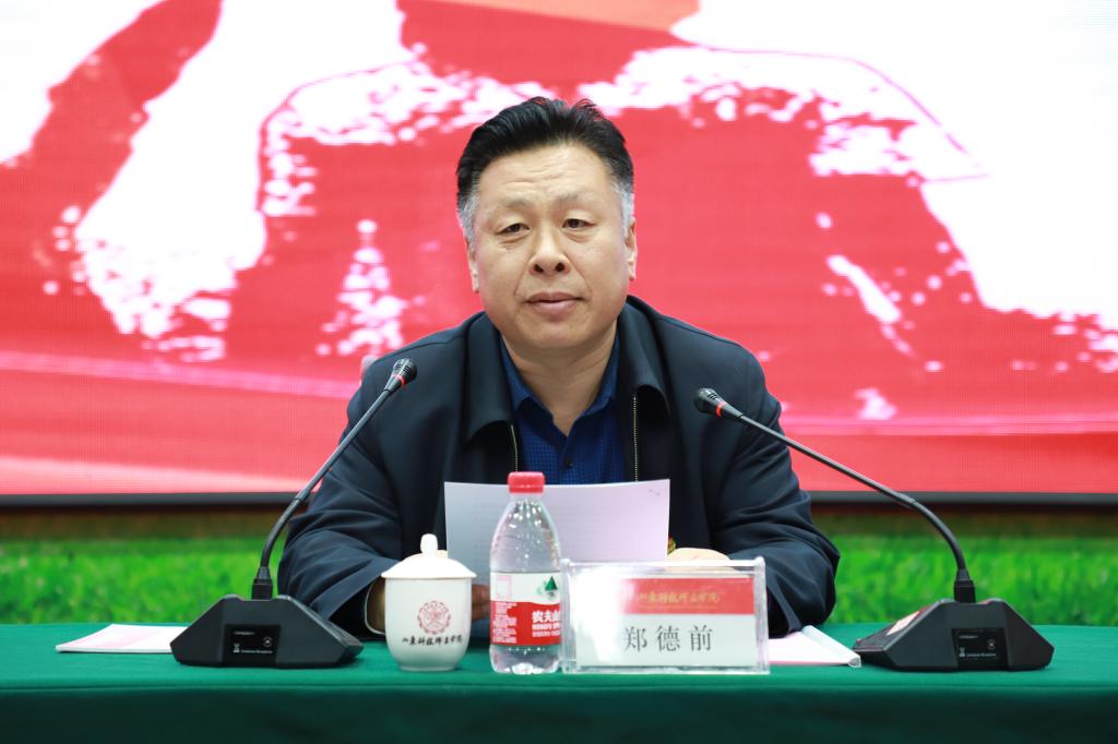 郑德前同志发表致辞,他指出,团校的成立,是学院在提升团员青年思想政治素质、培育优秀青年人才、加强团属阵地建设等方面做出的有力举措,对于进一步促进全院广大团员青年加强理论研究、创新工作思路、更好地推动学院发展具有十分重要的意义,郑德前对全体学员提出三点要求,一是要毫不动摇加强党的领导,贯彻落实习近平新时代中国特色社会主义思想。切实在广大青年中加强和改进理论武装工作,引导广大青年坚定正确政治方向,增强“四个自信”,坚定听党话、跟党走的人生追求。二是要扎实做好团校自身建设,打造有高度、有温度、有亮度的山科灯塔。要整合资源、充实力量,进一步加强师资队伍建设;要重心下移、面向基层,真正走入基层、走入青年中间开展有针对性的教育培训活动;要强化服务意识,提升服务能力,做广大青年信得过、靠得住、离不开的贴心人;要完善制度、加强研究,切实保证团校工作建起来、转起来、活起来。三是要夯实广大团员青年思想引领工作基础,营造人才济济、精英荟萃的良好局面。要把培养社会主义建设者和接班人作为根本任务,把巩固和扩大党执政的青年群众基础作为政治责任,把围绕中心、服务大局作为工作主线,将思想引领常态化地贯穿到广大团员青年培训和教育的全过程中去,广泛动员广大青年建功立业新时代。