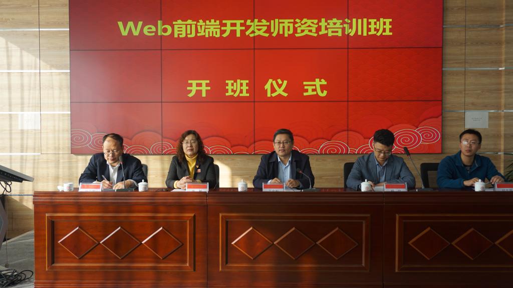 本次培训由山东省计算机专业建设指导委员会秘书处单位——我院信息工程系负责培训班的组织、会务及后勤保障工作。在开班仪式上,丁文利代表学校致欢迎辞,他对各位学员的到来表示热烈欢迎,并为大家介绍了本次培训的目的、要求及安排。丁文利在发言中指出,“Web 前端开发”作为教育部首批试点的 1+X 证书,在职业院校有广泛需求,为了更好地向全区广大职业院校传递市场对 Web 前端软件开发人才岗位需求,实现产业用人需求与学校人才培养的有效对接,培养双师型教师,省计算机专指委举办了本次培训班。最后,他预祝本次培训取得圆满成功。奥鹏教育的市场负责人杨铭也作了讲话,他首先介绍了奥鹏教育,接着就web前端开发职业技能等级证书做了详细说明。